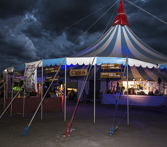 Con 22 m de diámetro, cubre una superficie circular de 390 m2. Posee un columna central que brinda una altura máxima de 9 m útiles en el interior. Altura mínima de 3m. Sus laterales son rebatibles y tiene en su perímetro columnas cada 1,5 m, totalizando en 41 columnas de soporte.